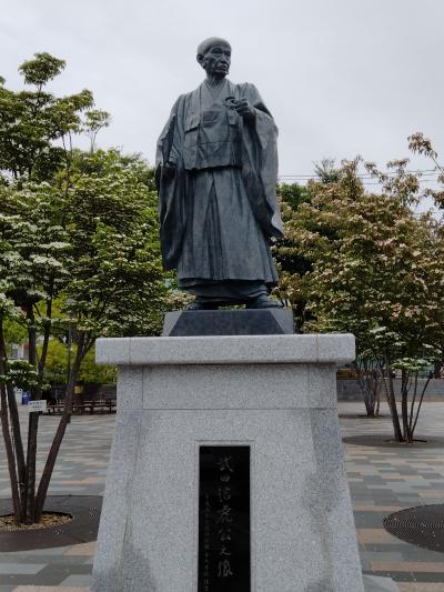 甲府駅南口に、信玄公(子)座像、北口に信虎公(父)立像がありました