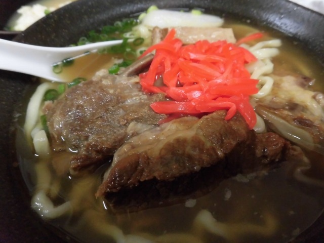 「本ソーキそば(770円)」には、ソーキ(沖縄風スペアリブ)がたっぷりのっていました。