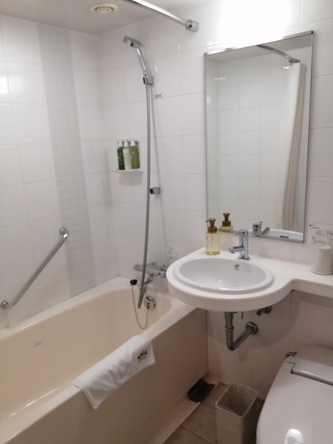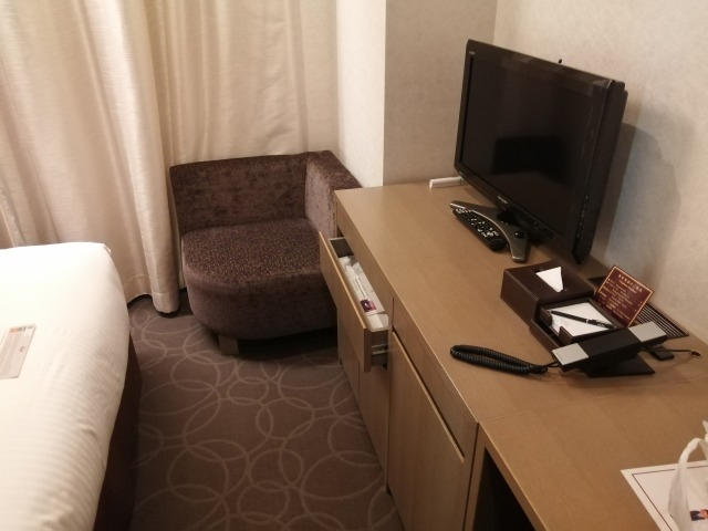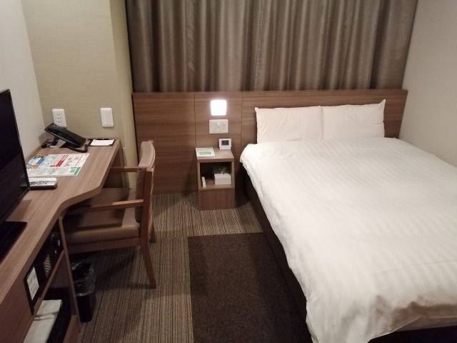 客室(12㎡)は、シャワー/トイレ、和風ベッド、折りたたみ椅子と机、テレビがある程度でさっぱりしていましたが、ゆっくりと休めました。