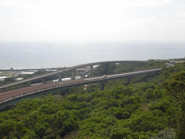 国道331号線の吉富交差点から山側へ少し上がり、道路脇に駐車して自衛隊脇の小道を100m位歩き、遠くに久高島が見えました。