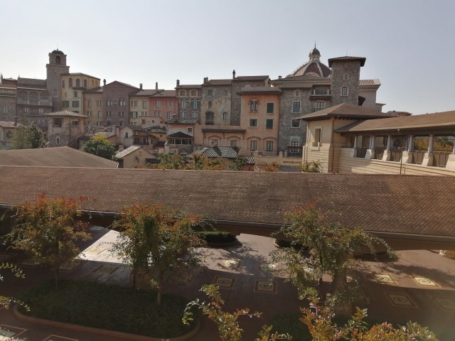 ディズニーランドステーション駅で停車したら、以前は駐車場だった場所に東京ディズニーランドホテルが建っていました。