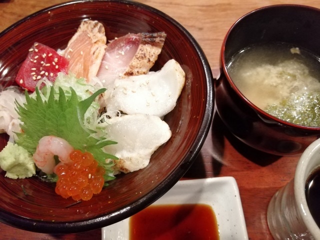 鰤(ブリ)が売りのお店の様ですが、9時半位の朝食だったので、お刺身が並んだサービス丼(海鮮味噌汁付き1,000円)を食し、充分満足できました。