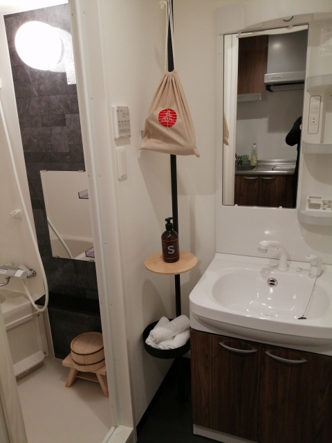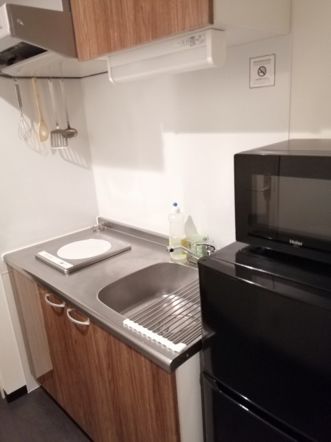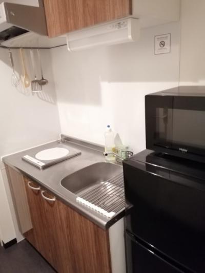 ワンルームマンションをインバウンド向けホテルに転用した様で、キッチンや食器もついていました。