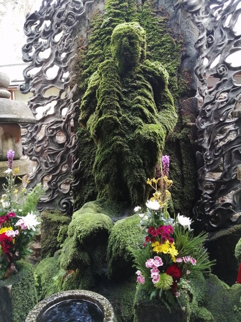 毎日、水をかけられているので、そのお姿は緑の苔に覆われています。