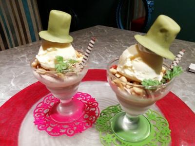 をオーダーして、ウサギパスタや帽子をかぶったデザート等を美味しく食しました。