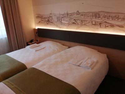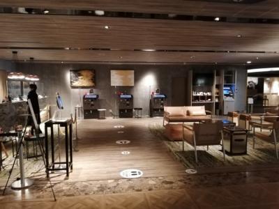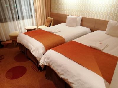 チェックイン/チェックアウトはタッチパネルで、ツインの部屋にアップグレードしてくれました。