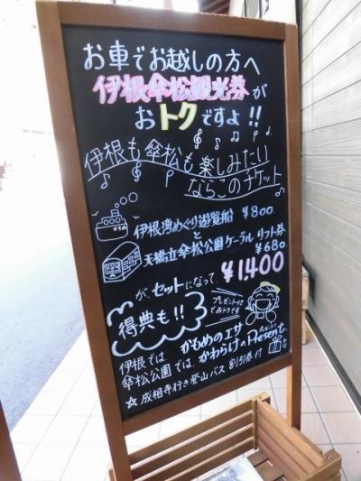 発着所で天橋立ケーブルカー付チケット(1,200円)を購入したら、カモメのエサ用のかっぱえびせんがついてきました。(観光船のみは800円で、かっぱえびせん別売100円)