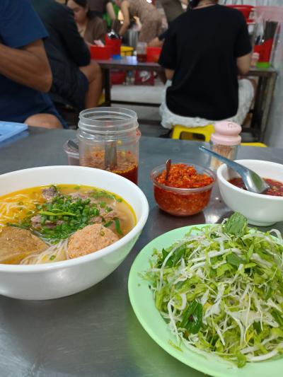 つみれや煮込んだ豚肉などをトッピングした「バイン・カン」と思います。千...