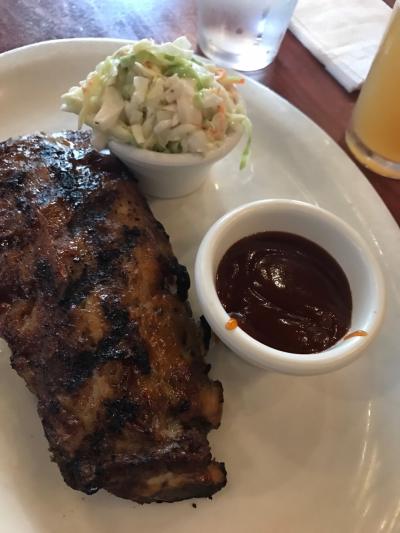そしてベイビーバックリブフルサイズを頼んだらお店の人が半分に切り分けて...