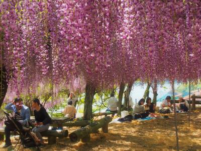 2400坪に咲く240本の数々の藤の花。こちらの本業はお茶屋さんで 広大な丘陵に植えられた茶畑も新緑を迎え圧巻でした。