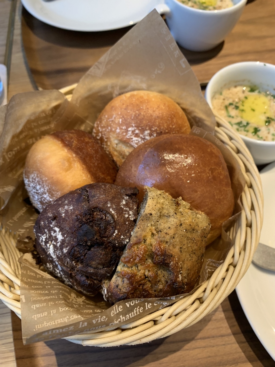 お隣のパンでグラタンランチも美味しそうでしたが、ここはグッとパン5種盛りランチ