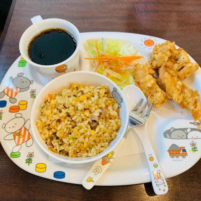 大好きなはずの唐揚げ(ここはとり天ですが)は一個で「もういい…」チャーハンは気に入ったようで完食
