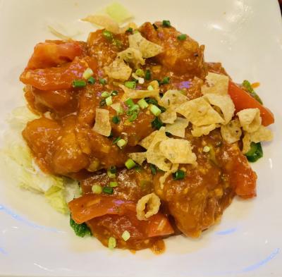 チャーハン!エビプリプリ!息子グッとサインでものすごく気に入りました!餃子も美味しいし、私が頼んだエビチリは大振りのトマトも一緒に炒められていて美味しかったです!1000円だし、そんなにたくさんエビは入ってこないとの予想を裏切り…もりもり(笑)