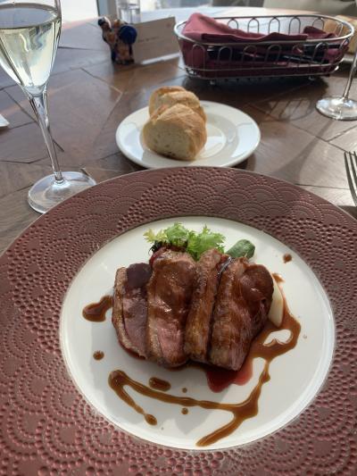 1000円ランチと1500円のランチがありまして、ネット予約で時間とポイント利用をして&もちろん1500円ランチ♪プラス500円で牛ステーキも選べますが、一旦通常のメニューでメインをお肉にします。