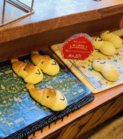 この前は夏だったので、パンも店内もすっかりクリスマス。店内とは別に分かれている広いイートインエリアに席をとってお店へ。相変わらず混んでます。