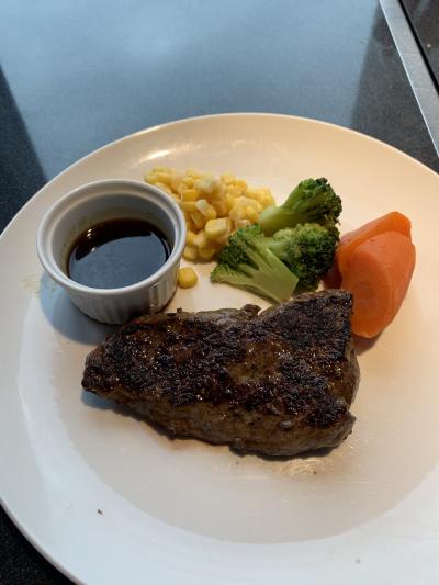 注文したのはランチタイムのステーキ1,100円。(本当は2,200円だそうです)お客さんも数組しかいなくてのんびり。外が見えるカウンター席でゆっくり頂きました!