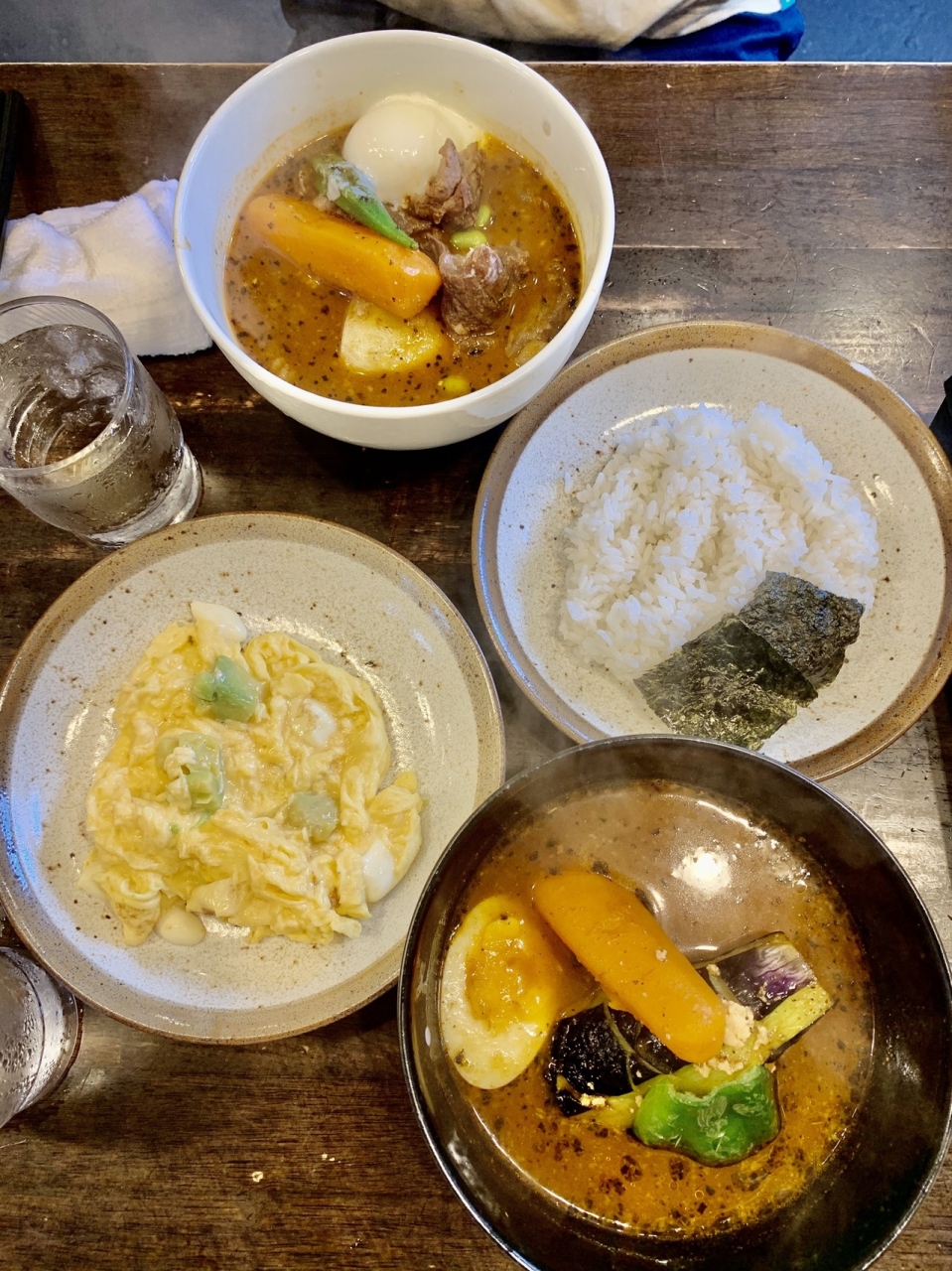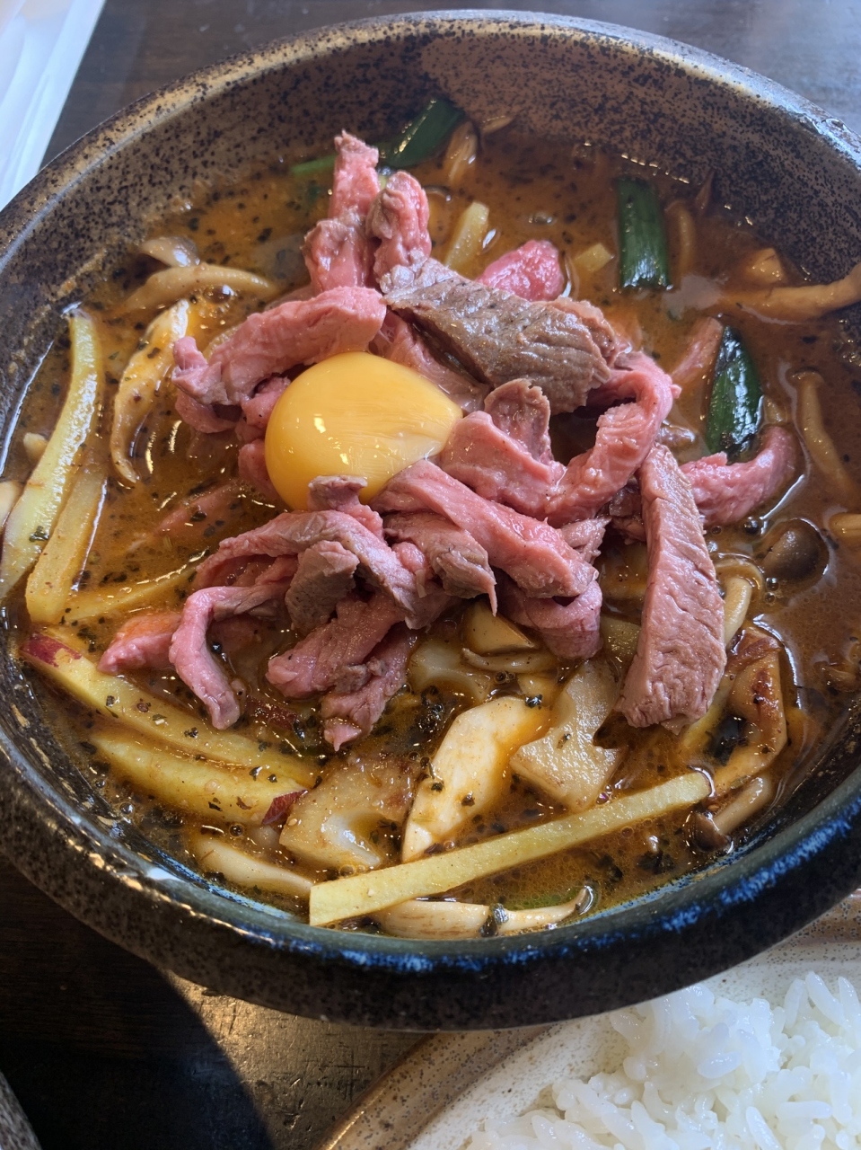 旦那さんは平日限定の牛すじと温玉のカレー!