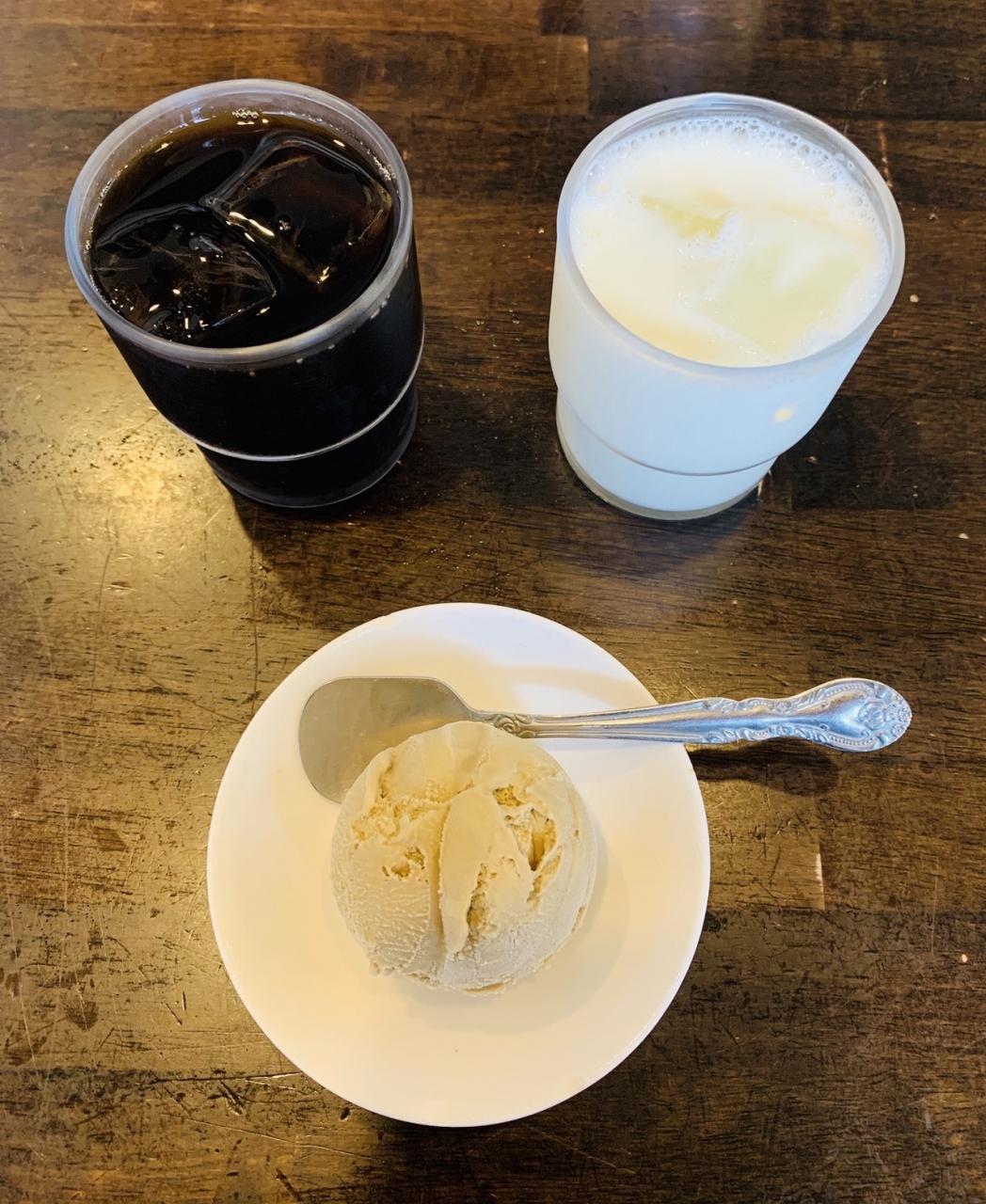 私は平日の数量限定メニューから『海老カツカレー』ライスなし&辛さ3&食後のほうじ茶アイス&プレーンラッシーをチョイス。12時過ぎには満席になりました。