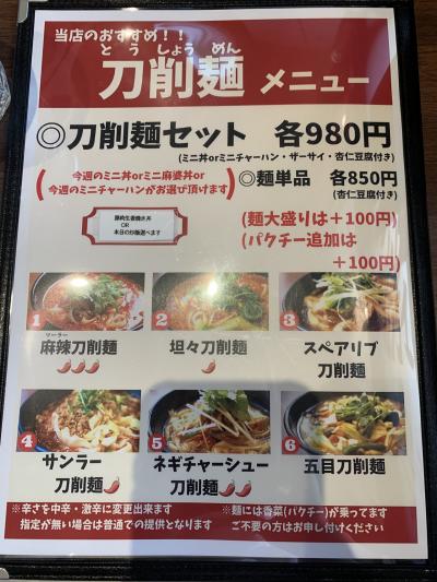 一緒に行った同僚は「麻辣刀削麺」と「サンラー刀削麺」