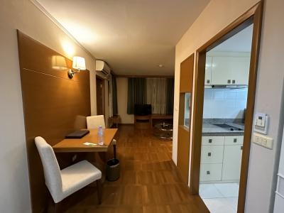 ルンピニ駅近くで高級コンドやホテルが多い安全なエリアに建つちょっと年期の入った元コンドミニアムであろうホテル。年期が入ったとはいえ最新でないだけで作りがしっかりしておりまだまだ綺麗。昔は日本の高級駐在員が住んでいたのか、余裕のある間取りにバスタブ付き。広めのリビングダイニングにキッチン付き、キングサイズのベッドなので小さいお子様連れの方にもお勧めできるし、荷物の多い私も、スーツケース広げやすくて大満足。クーラーも外付の日本式でアレルギー持ちでも問題無し。またこの辺に用があったら泊まります。
