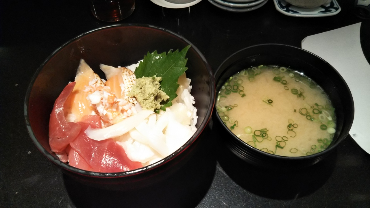 海鮮まかない丼(550円)を注文し、1分ぐらい出てきました。
