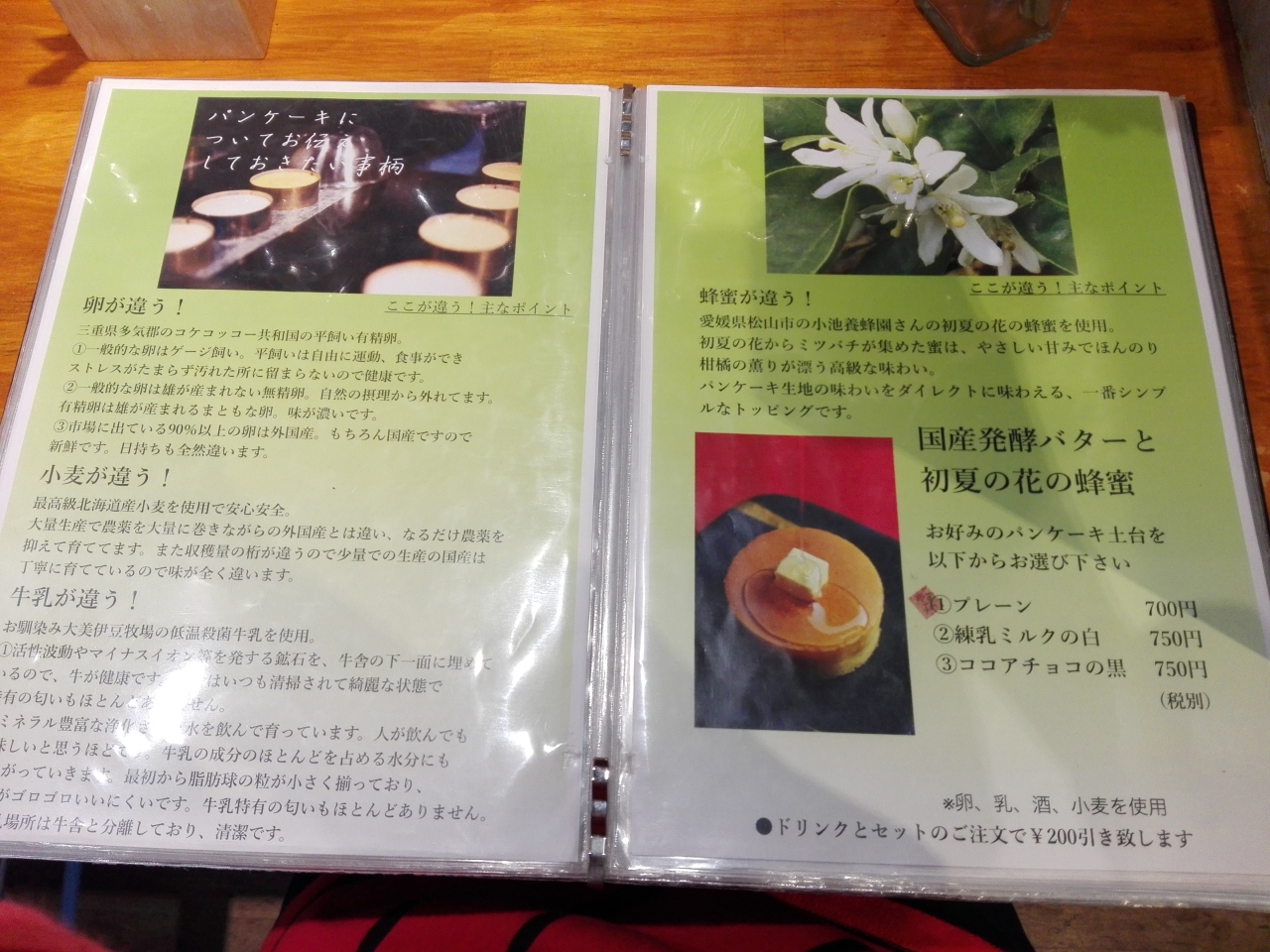 パンケーキ プレーン(700円)を注文。焼き上がりに20分ほどかかりました。