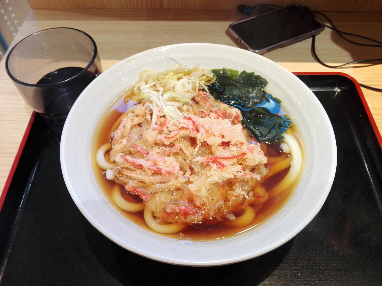 揚げ玉、お水はセルフで、うどんは美味しかったです♪