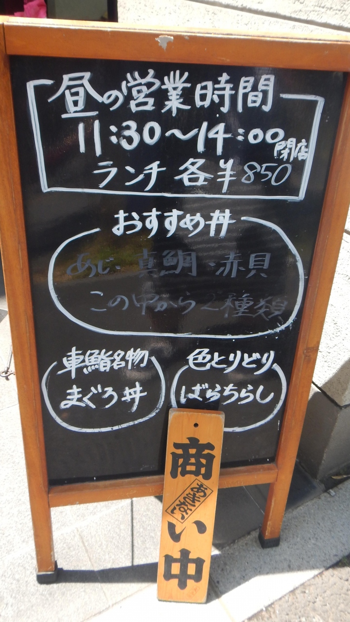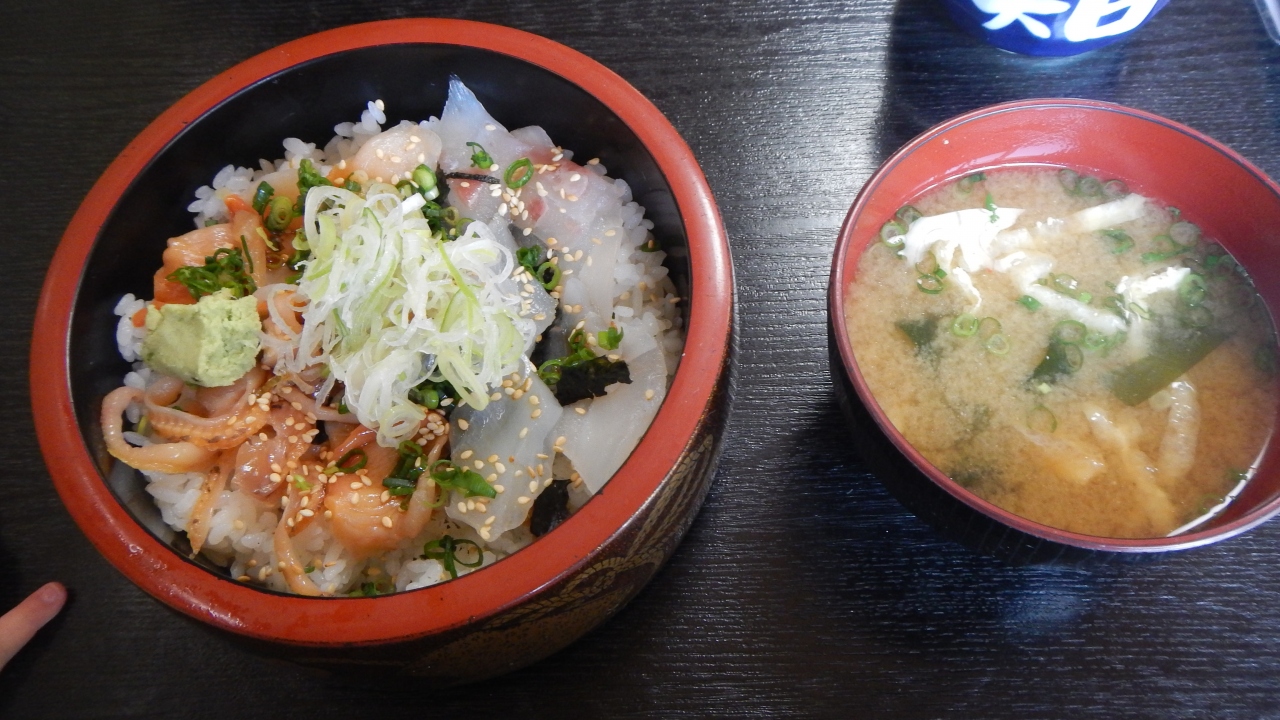 土日もランチがやっていて、メニューはオススメ丼(あじ、真鯛、赤貝の二種類選べます)とマグロ丼とバラチラシがありました。注文したのはオススメ丼(真鯛、赤貝)とマグロ丼で、オススメ丼は美味しかったです☆
