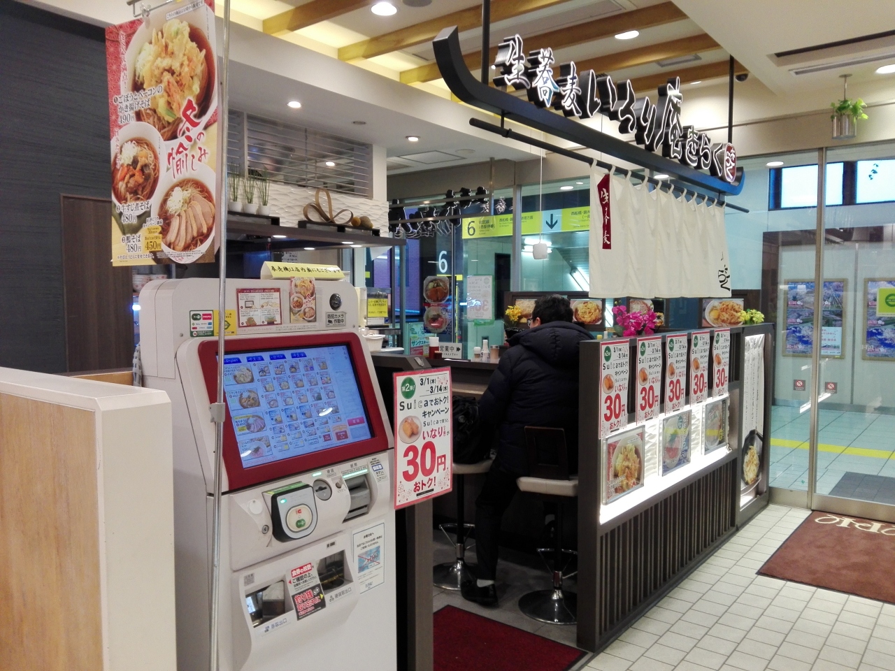 券売機のタッチパネルで季節限定のごぼうとベーコンのかき揚げうどん(490円)を購入。