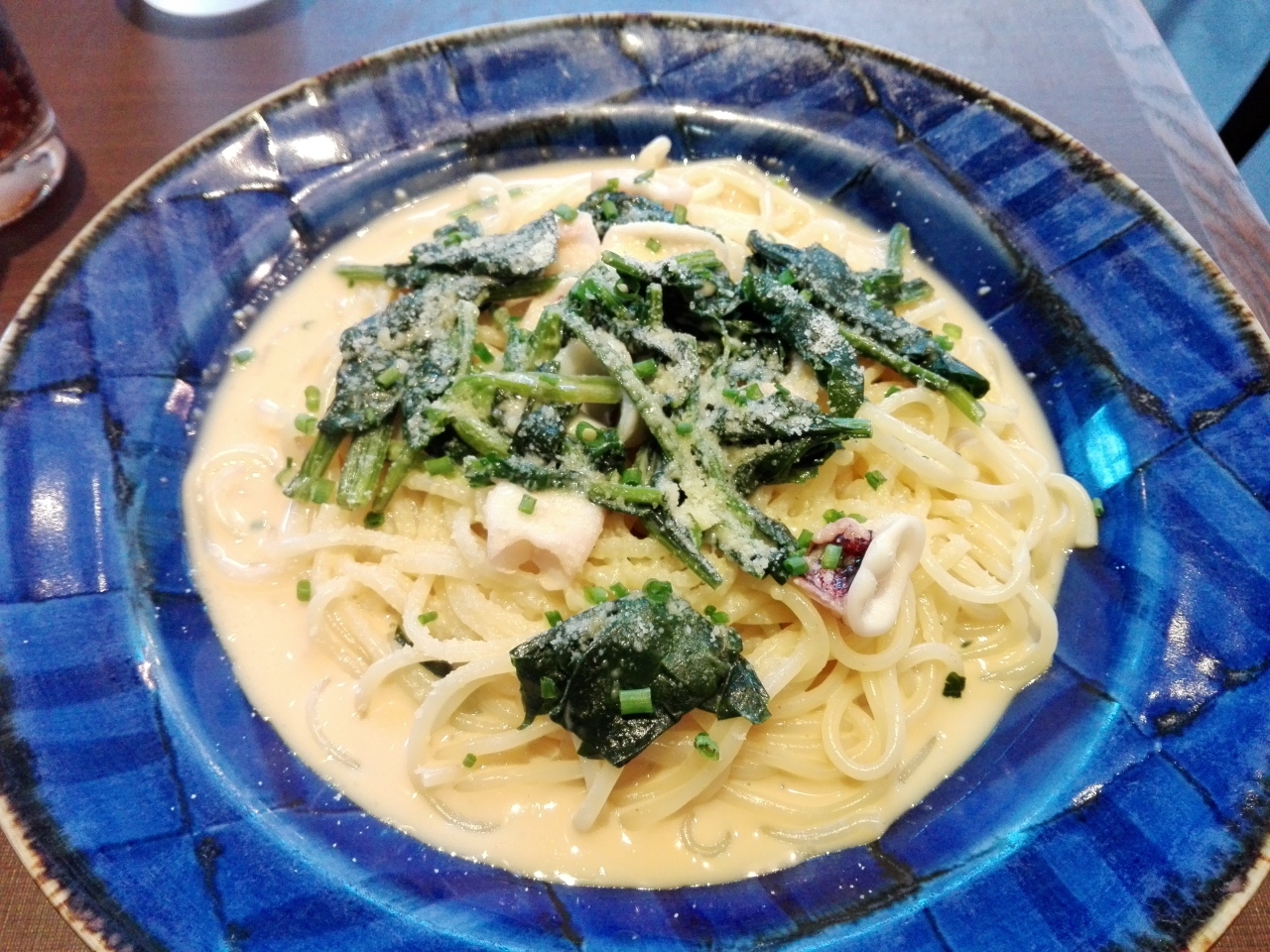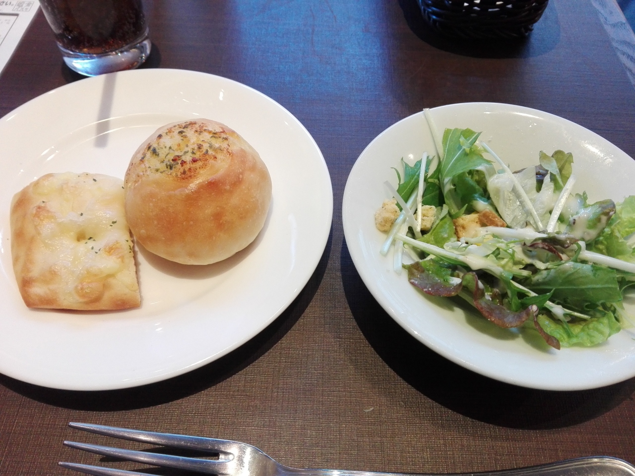 16時に来店しました。平日11~17時までランチセットがあるので、やりいかとほうれん草の和風クリームパスタ(1190円)を注文。店員さんによると『生麺のため、麺が水分を吸い上げてしまうので早めに召し上がってください』と言ってました。パンの種類は選べましたが焼きたてでは無かったです。味はまあまあでしたが接客は良かったです♪