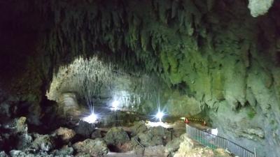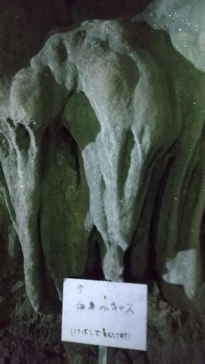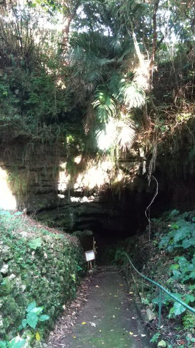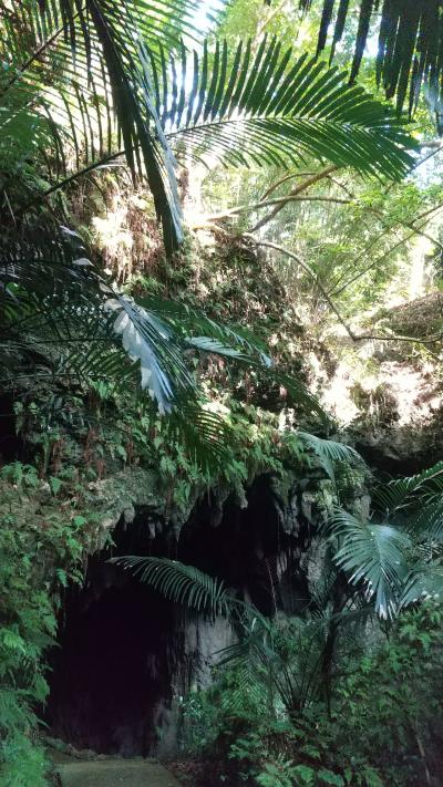 知名のフローラルホテルから自転車で1時間30分弱。最後はダラダラした上りなのでママチャリなら行きは歩いた方がましな感じ。入口駐車場からちょっと横道に入ったところに入口があります。入場料はフローラルホテルフロントで100円の割引券がもらって1000円。そんなに期待せずに入りましたが、中は広くて見どころ多い。手書きの命名札もあって、結構、笑えます。途中、かがまなければ通れないところも数か所ありますが、閉所恐怖症気味の私でも行けるレベルでした。日曜日なのに、見学者は私だけで、ちょっとしたお化け屋敷感覚で楽しめました。洞窟を出ると南国の森。なんか良い感じの演出です。