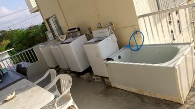 2階に洗濯機が数台あって洗剤もおいてあり、自由に使えます。ダイビング器材の洗い場、干場もあり、便利でした。