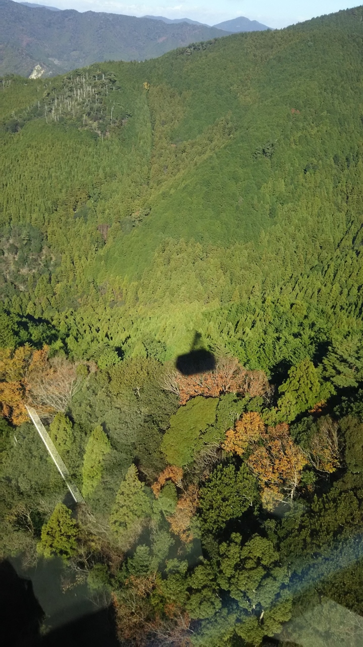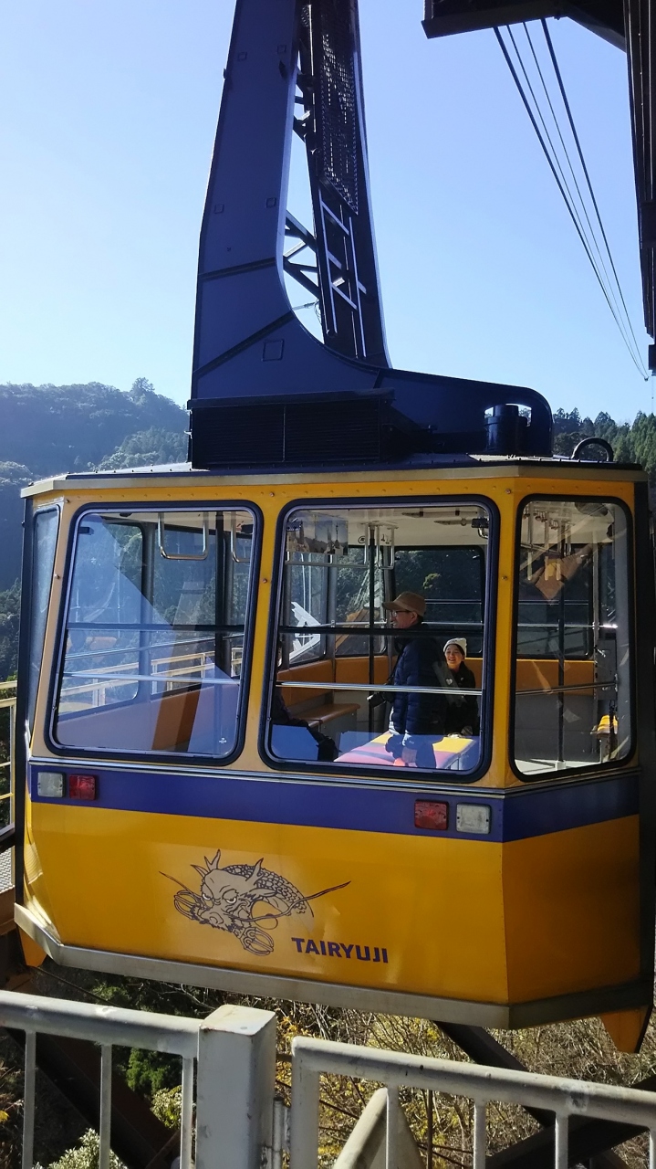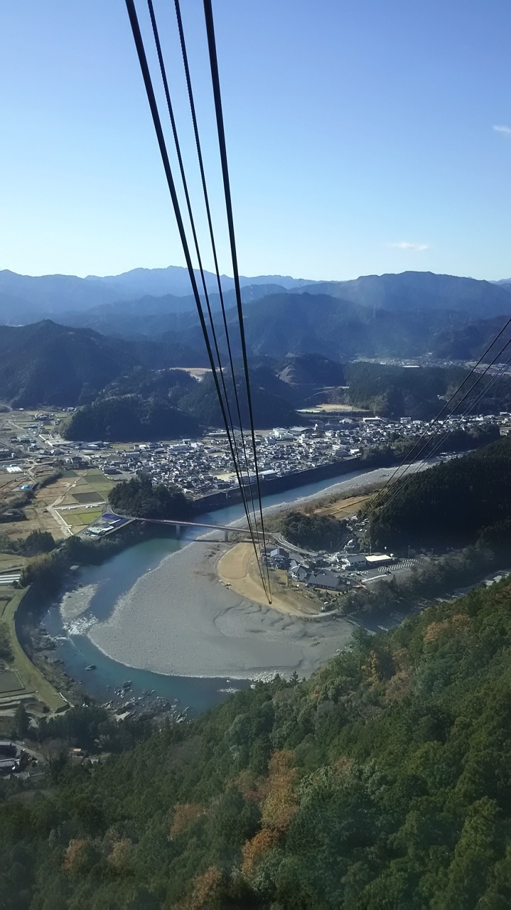 四国88景の一つということで行ってみました。西日本で最長、山・川越えを行う珍しいロープウェイということですが、時間は10分程度で、里山の上を遊覧するだけなので、スケール感では今一歩の印象でした。山は常緑樹が多いので、紅葉は期待できません。遥か彼方に海が見えました。