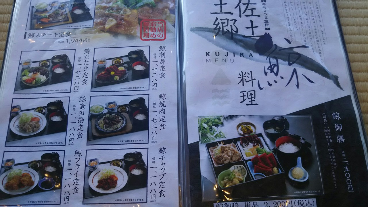 海沿いのレストランです。1Fが満席だったので、2Fの座敷へ案内されましたが、太平洋が一望出来ました。メニューは普通の定食からいろんな鯨料理まで様々あり、迷うほどでした。鯨の竜田揚げ定食、鯨ユッケ石焼ビビンバ、海鮮丼、ネギトロ丼を食べましたが、どれもおいしかったです。鯨はクセのない味でした。