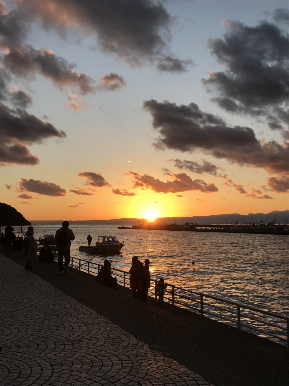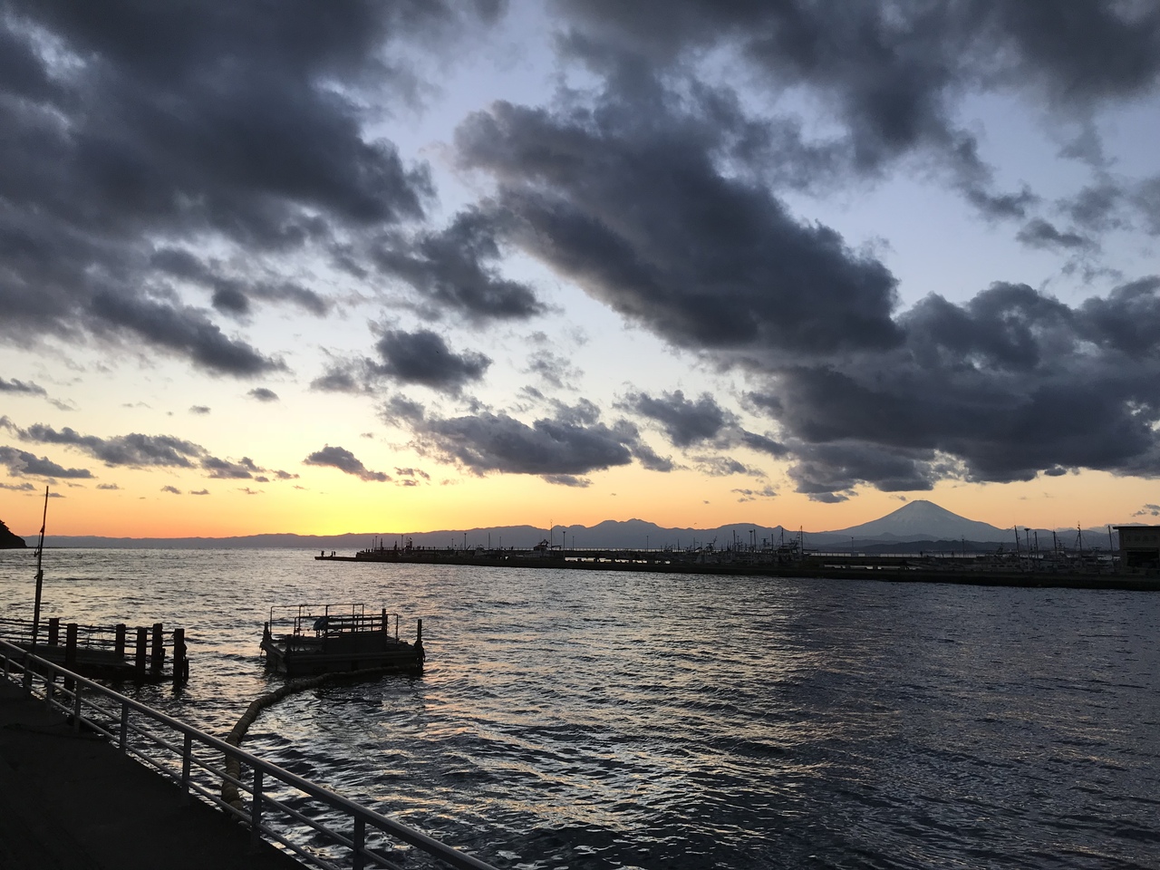 江ノ島では海鮮の屋台もたくさんでていました。夕方の日の入りの時刻には富士山が海の向こうに見えて美しい光景でした。夏のイメージの江ノ島ですが冬もまたよいです。- 旅行時期