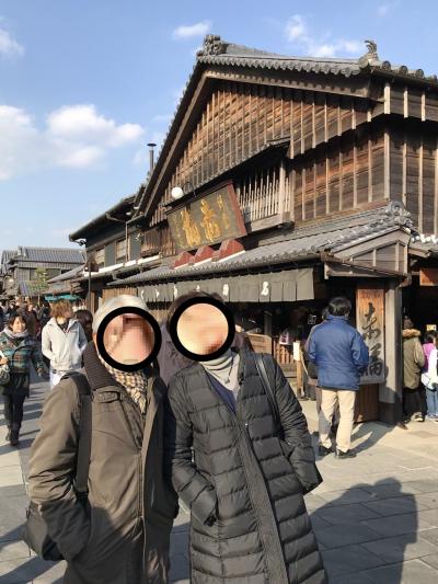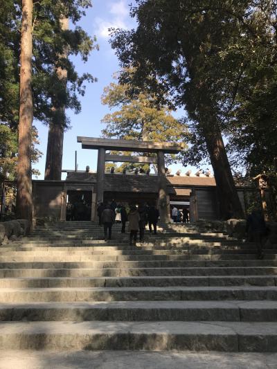 一生に一度はお参りに…と昔から言われる伊勢神宮。一年中参拝客が絶えず、1月下旬の平日でもかなり混んでしました。車で行くと駐車場待ちで一時間並びますのでタクシーがおすすめ。橋を渡り、五十鈴川で身を清め、大きな御神木に包まれるようにして歩き、神殿に頭を下げる。なんともすっきりと力が湧くような感覚でした。日本人でよかったなと思います。