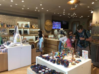カサパトリョのすぐ隣にあるお家。チョコレートで財を成したご家族がデザインを頼んだのだとか。中を見学することもできますが、今回は外観と中のチョコレート屋さんでお買い物!ミュシャの絵を使った缶入りのチョコレートが手軽でお洒落。センスの良いお土産として喜ばれると思います。