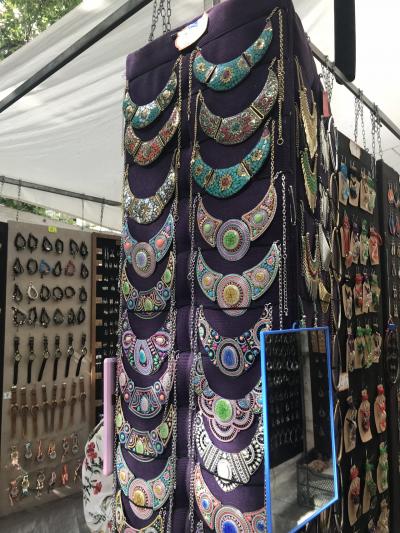日曜日に開催されるのみの市。アンティークや手作りの商品を売るお店、アクセサリー、食器や洋服など見ているだけでワクワクします。地元の人も買いに来ているよう。シルバーのアクセサリーは趣味が良くて安いのでお勧めです
