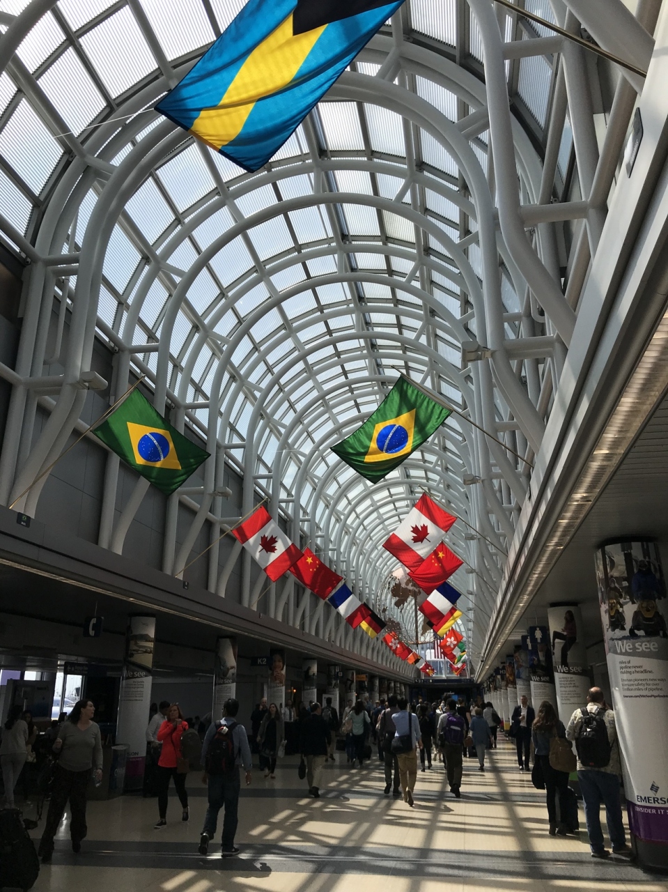 日本直行便ターミナルにはブランドショップはないですが、スタバや有名ポップコーン屋さんなど食が充実しています。レストランというよりフードコートみたいな感じのエリアがあります。職場へのシカゴ土産を探そうと思っていましたが、あまり良いものは見つからずでした。市内で調達するのが良さそうです。