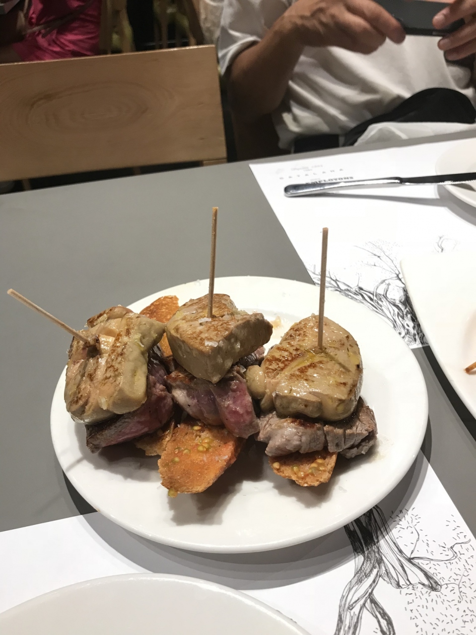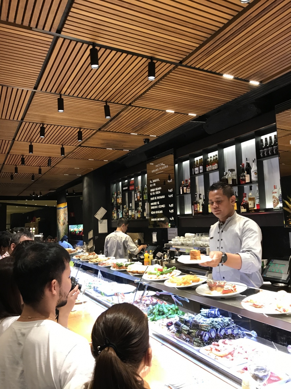 19時ごろふらりと立ち寄ってみたところ、すでに長蛇の列が。受付のお姉さんに名前を告げて30分程待ってから入店しました。おつまみ定番のピメントスやヒレ肉ステーキのフォアグラ乗せ、エビのブロシェットなどタパスやピンチョスをいただきました。どれも絶品!お店スタッフも感じがよいです。カウンター席は食べている人の後ろに立って席が空くのを待つスタイルで難易度高めですが、雰囲気がよいので次回はカウンターにも挑戦したいです!