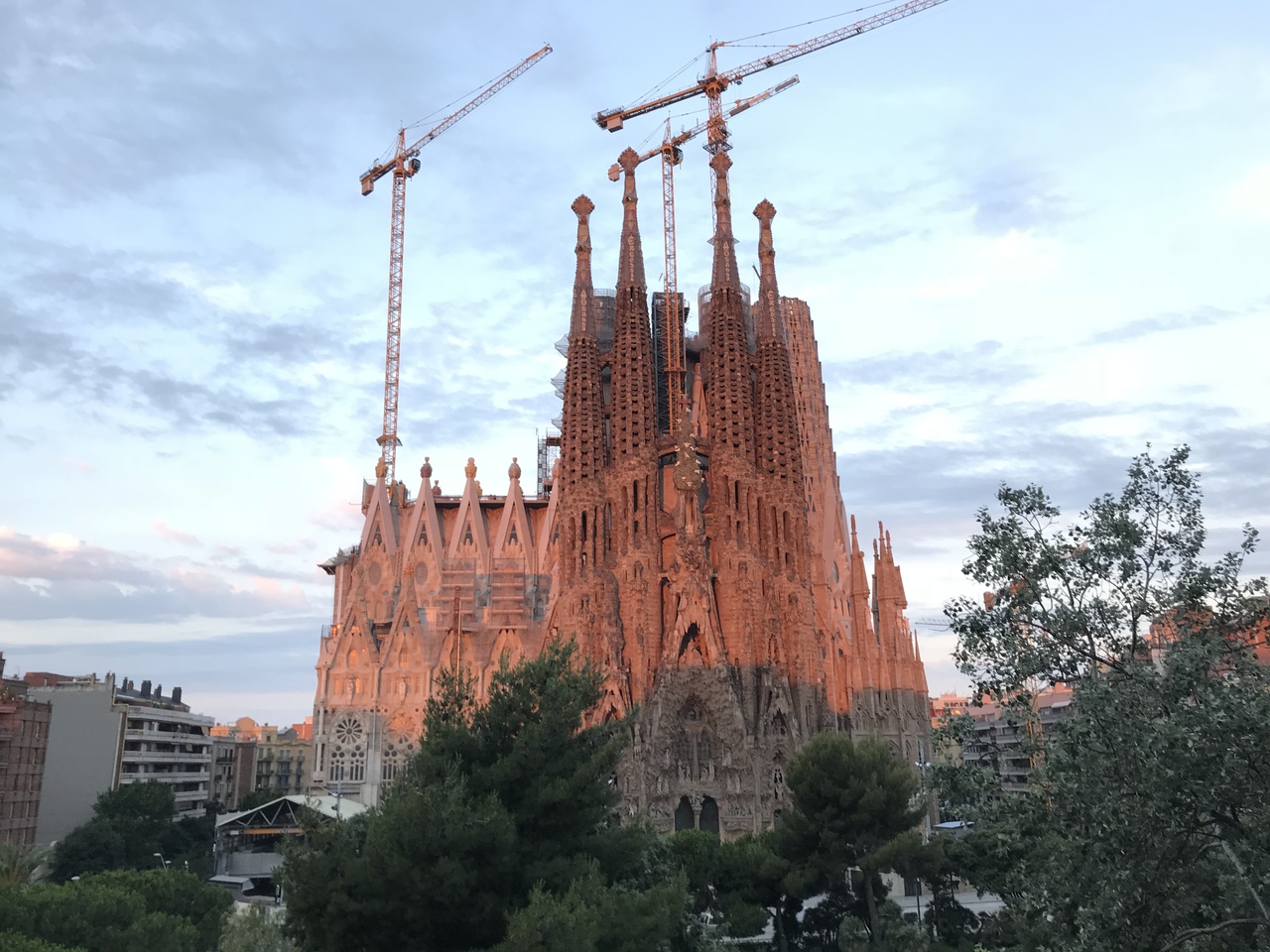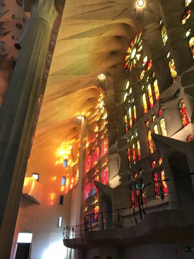 朝と夕方に訪れました。外観もさることながらなかのステンドグラスが神秘的て美しく、圧倒されます。朝は青いさわやかな光が、夕方は赤や黄色の暖かい光が教会内に溢れ、なんとも素敵な空間です。生誕のファサードにも朝登りました。渦巻き階段は鳩の塔など見どころも多く楽しめました。完成したらまた見に行きたいです。