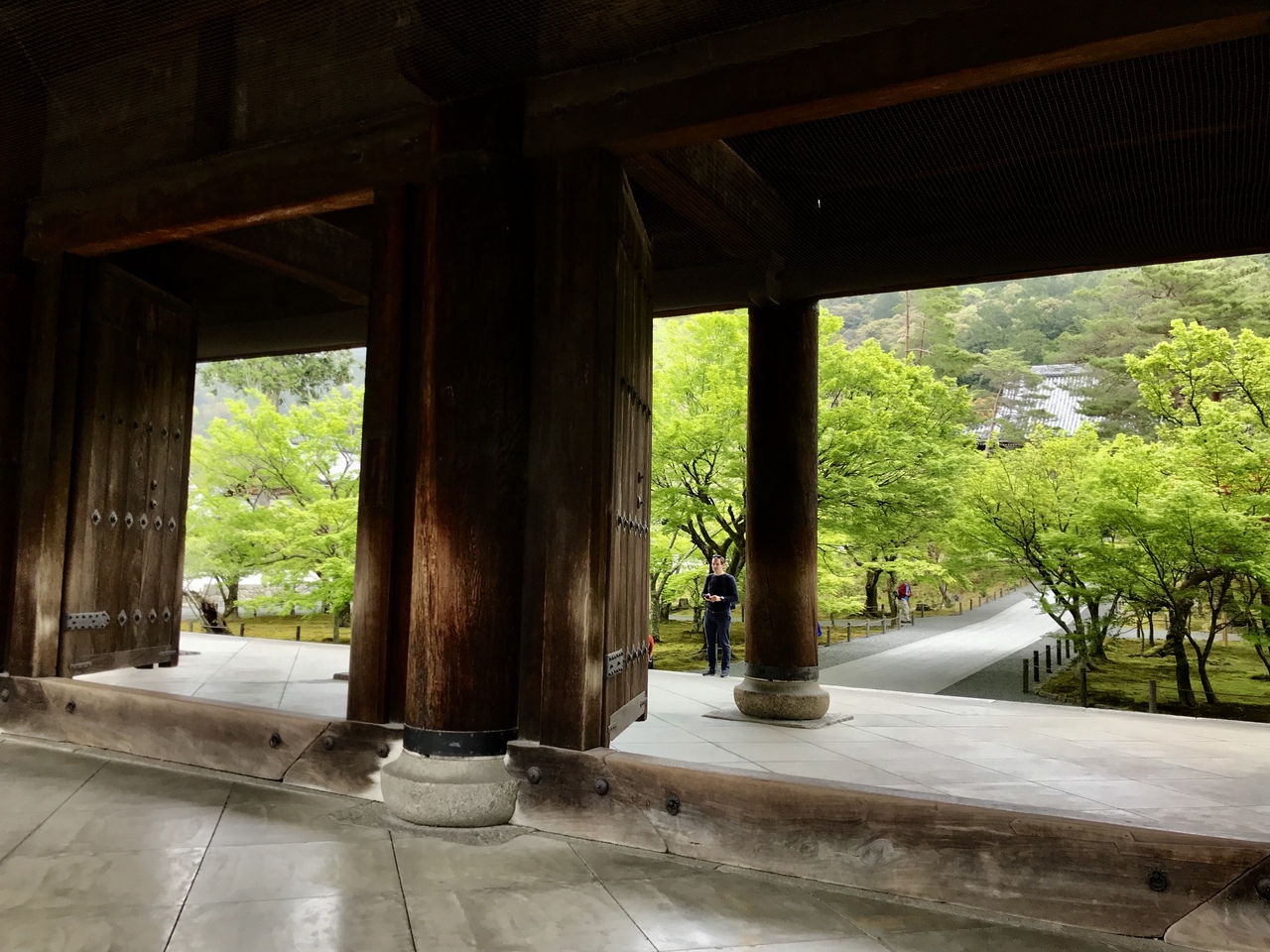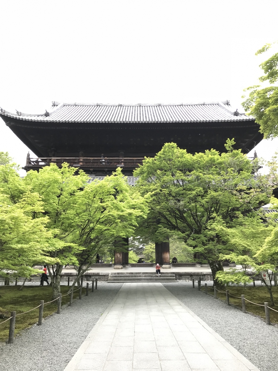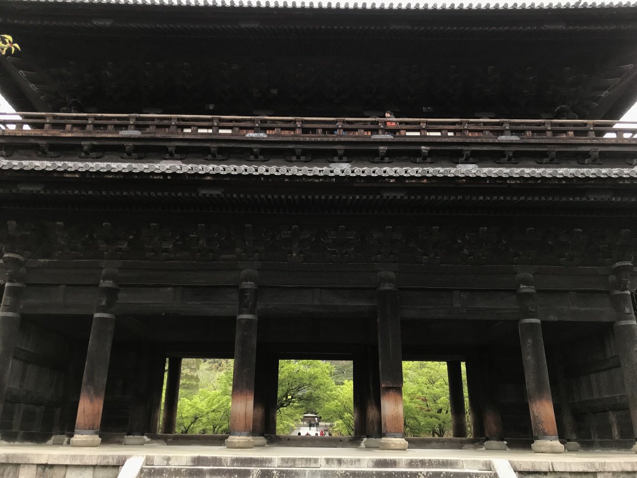 南禅寺の主役とも言える三門。有料ですが門の上階に登ることができます。石川五右衛門のセリフ通りの絶景が楽しめます。上に登らなくても、新緑の季節は開いた門の扉から見える境内の景色が絵のように美しかったです。