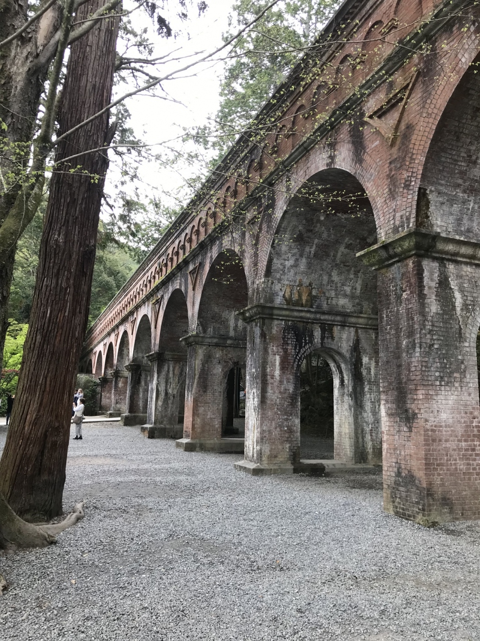 南禅寺の境内にある水路閣。お寺の境内を通るためにわざわざデザインしたという趣きのある水路橋です。外国人観光客のフォトスポットのようで、たくさんの方が写真を撮っていました。お寺の雰囲気とは少し違う異国情緒溢れるデザインですが不思議と景色に溶け込んでいます。
