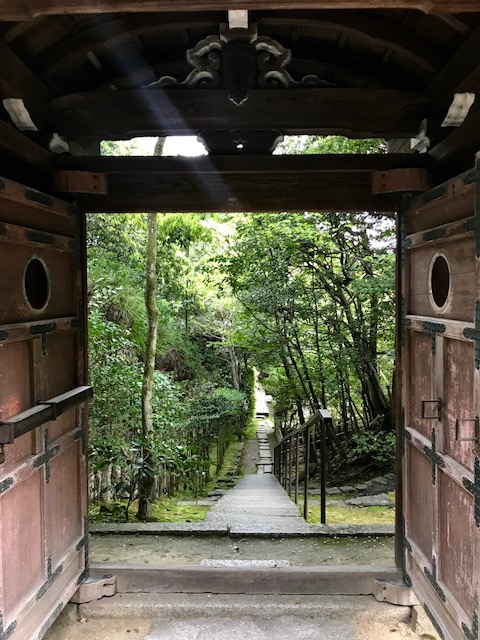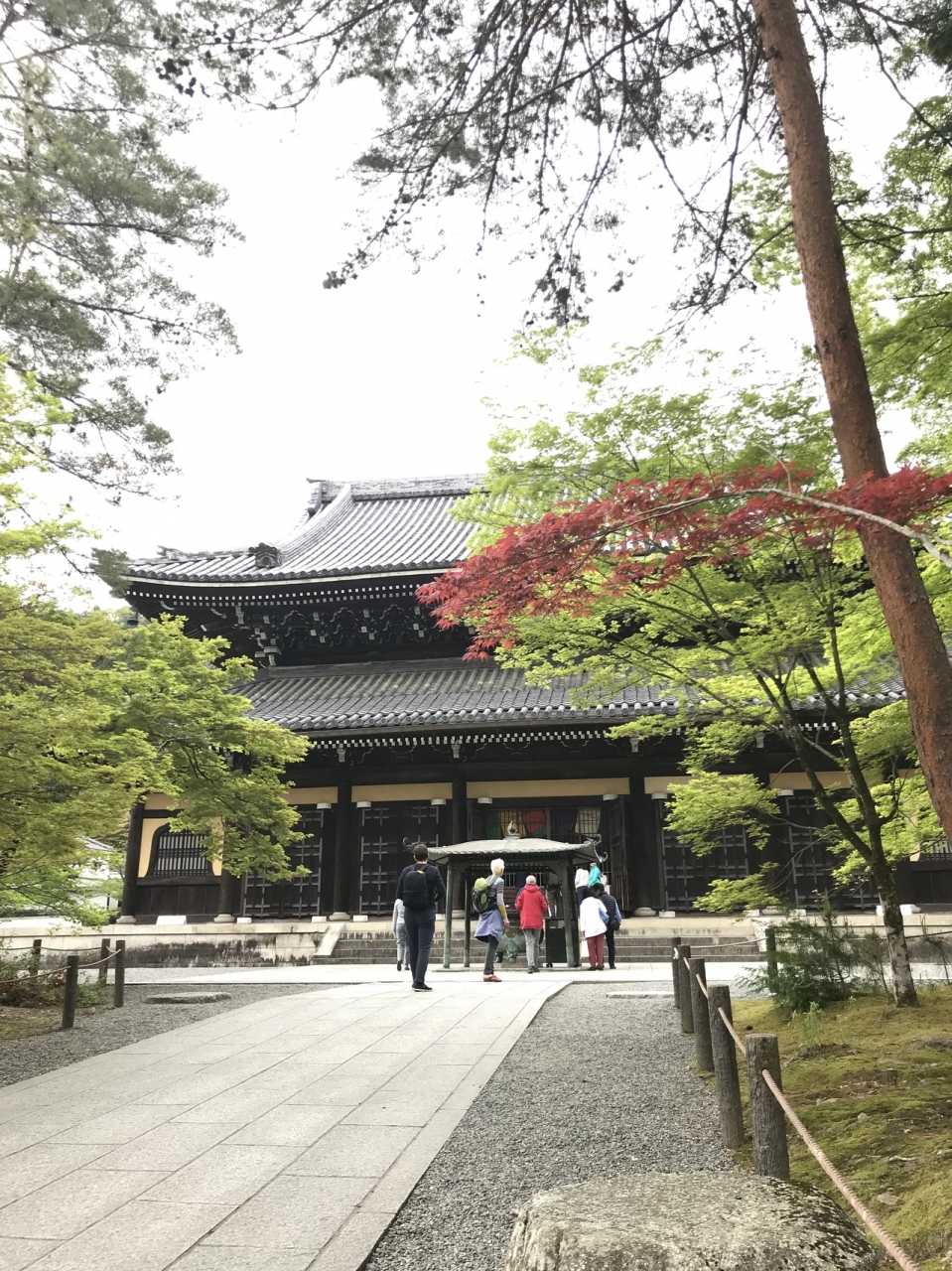 南禅寺に向かう途中に立派な門と立て看板を見つけました。南禅寺で外国人観光客の人ごみに疲れたこともあり、静かな空間を求めて金地院に立ち寄りました。中のお庭は手入れが行き届いており新緑が美しかったです。本堂には有名な猿のふすま絵があるとか。絵を見るだけで700円の拝観料が別途必要とのことでしたので、また次回にしました。