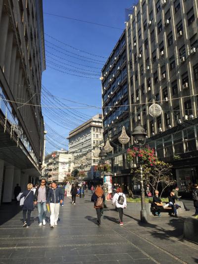 お店やレストラン、デパートなどが道沿いに並ぶ賑やかな通りです。オープンカフェやオシャレなお土産屋さんも多いので歩いていて楽しいです。夜は大道芸人もいました。デパートの上階にはパスタなどが食べられるフードコートがあり、味も美味しかったです。