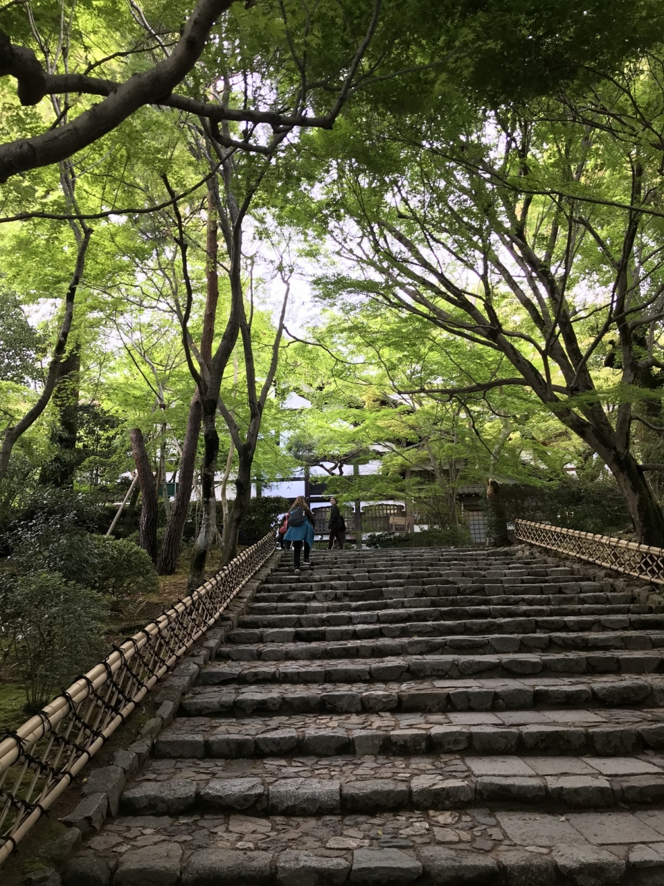仁和寺から龍安寺まできぬかけの道ど言われる道を20-30分かけて歩きました。バス通りで上り坂が続きますが、緑が綺麗な山のなかを歩くのはなかなか気持ちが良かったです。道沿いにお店は見どころは特にありませんでした。