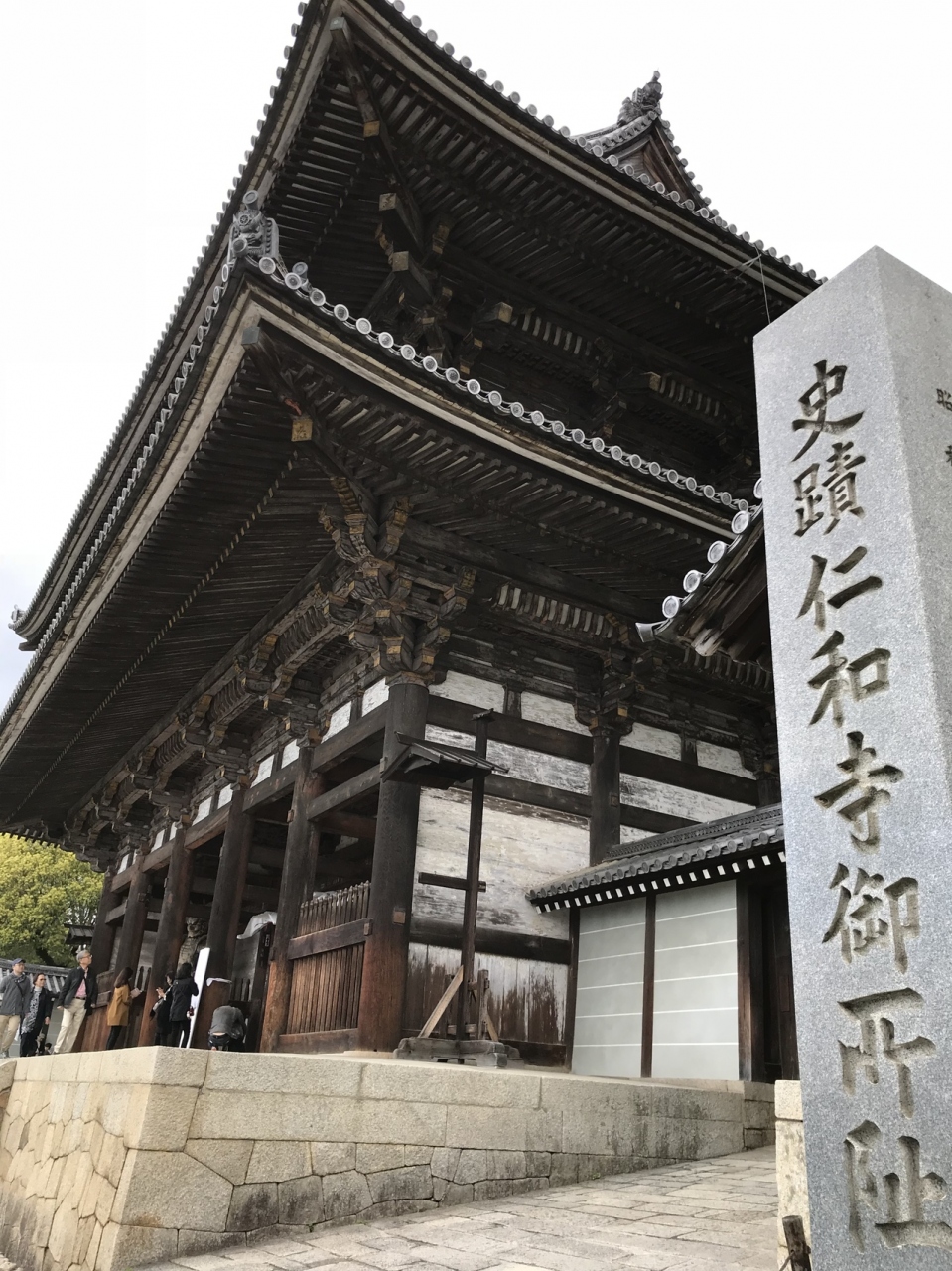 妙心寺北門から歩いて15分くらい。仁和寺に御所桜を見に行きましたが、今年はもう見頃は過ぎてしまいました。立派な門から始まり、五重塔や本堂は新緑に囲まれて美しかったてす。