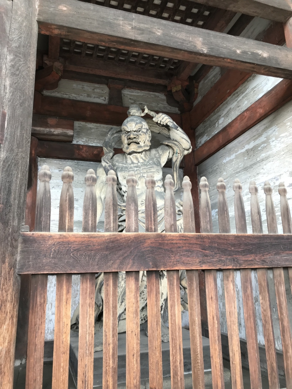 あ、うんの仁王像が安置されている正面の門です。仁王像は迫力があり、パワーを感じます。近くまで寄ることもできるので、筋肉の流れや筋までみることができます。うつくしい像なのでゆっくり見ていても飽きません。