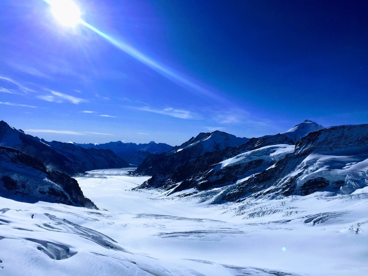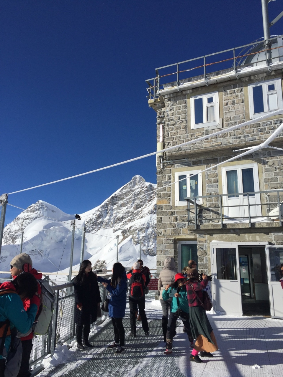 チューリヒから日帰りでユングフラウヨッホに行きました。10月末で朝7時発のSBBに乗り、インターラーケンオストから登山鉄道に乗り換えます。スイストラベルパスを提示すると登山鉄道が3割引きくらいになります。乗り換えはスムーズで10時過ぎには着きました。お天気も良好!雪がありとても寒いですが絶景でした。12時近くなると韓国の団体がなだれこんで来て写真どころではなくなったので、午前中早めに行くことをお勧めします。山頂駅にあるレストランは高くていまいち。韓国人たちは辛のインスタントラーメンを立ち食いしていました笑