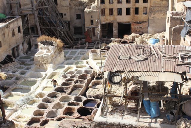 においが強烈なのでミントを渡されます。動物の革を染色しているそうですが、白色は鳩のフン、黄色はターメリック(?)、なんて風に説明を受けるも、引きむしられた動物の毛が散らばる光景、そして臭いにやられ、刊行どころではなくなりました。